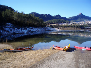 Bueno, bueno la salida estuvo genial, un dia estupendo, un solete bien majo y el punto exótico de la nieve en los bordes del pantano. Lo dicho genial. Disfruté de la compañía de Fran, LADYKAYAK y drope y fue un gustazo ir conversando con ellos de esto y de lo otro.