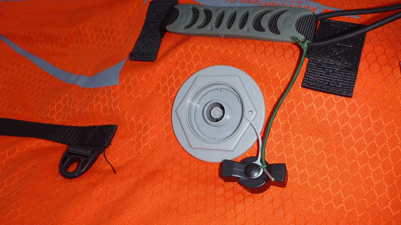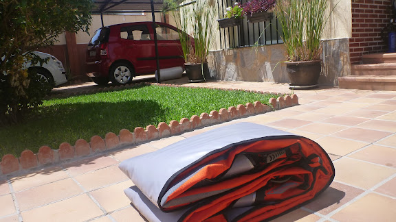 Incluye cubiertas para una y dos personas, dos cubrebañeras de la marca advanced elements ( http://goo.gl/hXNhl ) e hinchador de mano de doble acción Tribord. El kayak es una gozada, quién dude que mire opiniones por internet, es de los mejores hinchables que hay, si no el mejor. Unico desperfecto: la cuerdecita que sujeta uno de los tapones se rompió, solucionado de forma casera (última foto). Precio total del conjunto (en decathlon) 1035€